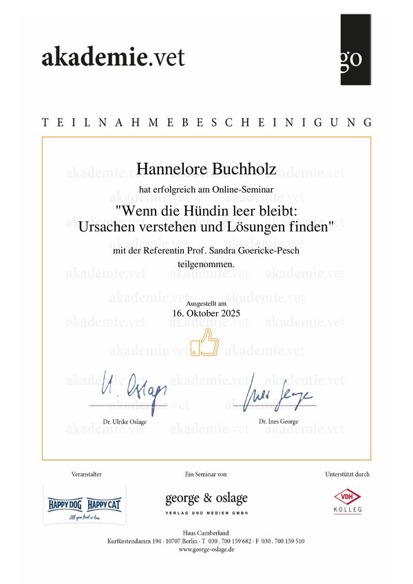 Am 09.10.2025 habe ich an einem weiteren Züchterseminar teilgenommen. Diesmal ging es um das Thema: „Wenn die Hündin leer bleibt: Ursachen verstehen und Lösungen finden“
