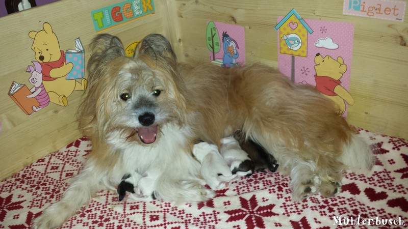 Zum Nikolaustag können wir bekannt geben: Gestern ist unser O-Wurf zur Welt gekommen! Es sind 4 Rüden und 2 Hündinnen! Mutter und Welpen geht es prima. Wir erholen uns jetzt alle erstmal von den Anstrengungen. Namen und Einzelbilder gibt es später.