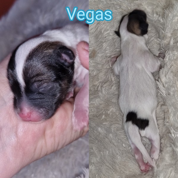 Nur 5 Minuten nach seiner Schwester purzelte unser Vegas um 00:10 Uhr mit 254 gr. auf die Welt. Vegas bekam seinen Namen in Anlehnung an die Stadt Las Vegas, die als Spielerstadt bekannt ist. Unser Vegas hat auf dem Rücken einen dunklen Fleck, der wie eine 8 oder ein...