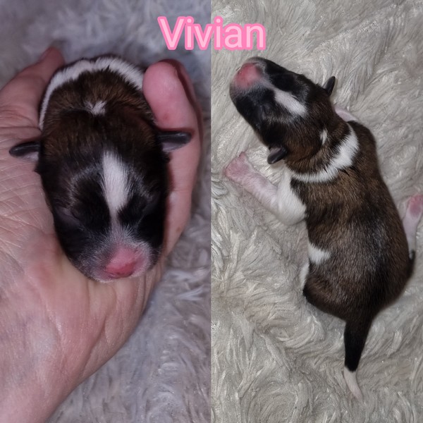 Als erste Hündin kam am 27.10.2025 um 00:05 Uhr mit einem Geburtsgewicht von 245 gr. unsere Vivian zur Welt. Da sie schönes, rotes Fell besitzt, kam mir bei ihrem Anblick Julia Roberts in den Sinn, die im Film "Pretty Woman" die Vivian Ward spiel, so dass Vivian den...